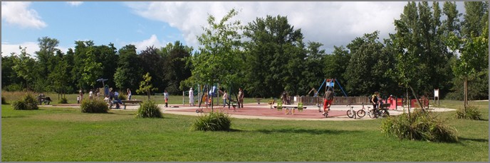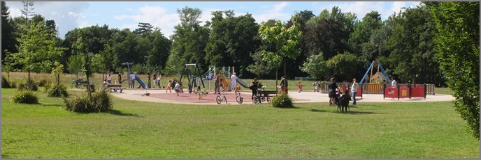 Il y a des balançoires, des jeux et toboggans, etc…